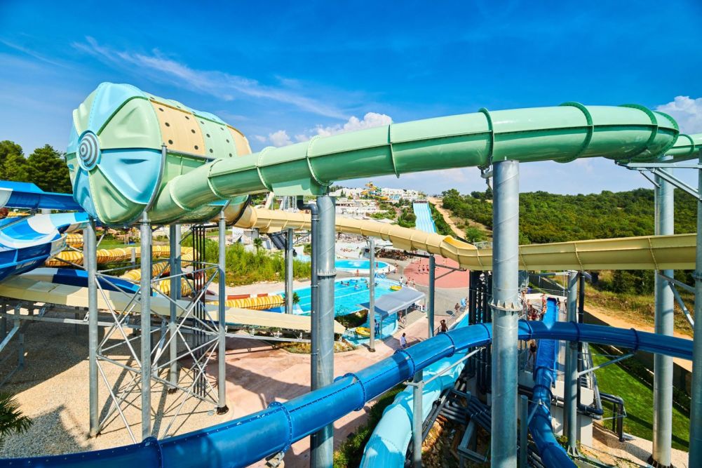 Istralandia is aquapark located near the road that leads from Novigrad to Nova Vas about 50 km north from Rovinj. Opened for visitors in June 2014, it was the first Croatian water park who also won a special award for the entrepreneurial project of the year in the category of new parks in Europe. In aquapark you can enjoy in numerous attractions for children and adults as well, like the tallest water slide called "the free fall" or the biggest swimming pool with waves in the region. For more info visit: www.istralandia.hr ■ Direction: 45.346730°N 13.617147°E ■ Istralandia Virtual tour